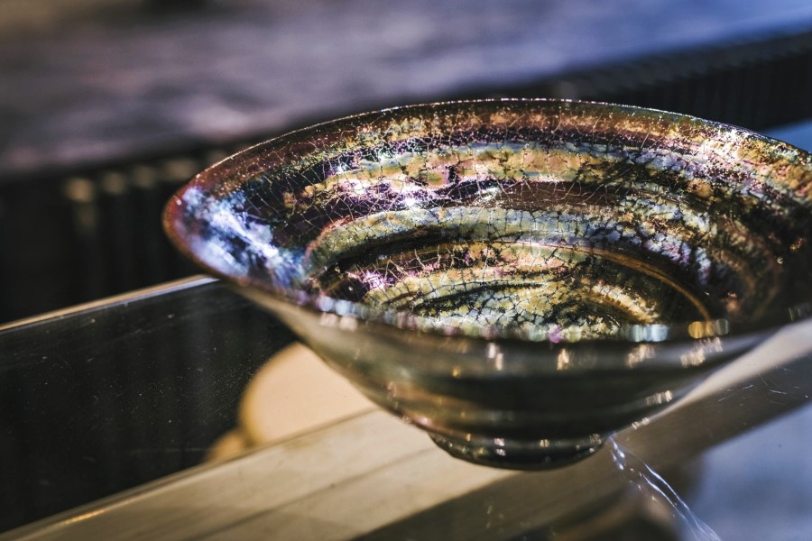 陶土と釉薬、希少金属を融合させ、独自の光沢と質感を生み出す。