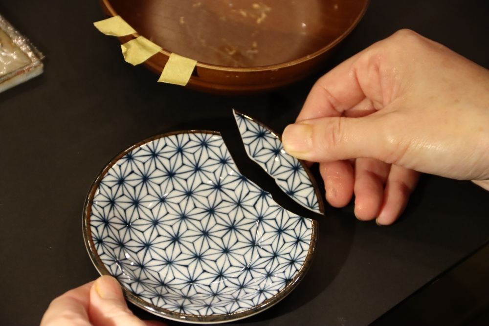 ![]() Option D:Edokomonmamezara A mini plate bearing timeless patterns born in the Edo era 江戸古紋豆皿 Overview|概要 This is the most approachable kintsugi experience, perfect for beginners and families. Participants choose from five traditional Edo Komon patterns— designs developed during the Edo period—and select their preferred break pattern to restore. Each motif carries a special meaning, such as wishes for longevity, health, or a child’s growth. The process is simple and safe, making it easy to continue practicing at home. This course is also a popular choice for souvenirs and thoughtful gifts. 江戸時代に生まれた5種類の江戸小紋柄の器から、 お好きな割れ方を選び、金継ぎを体験します。 長寿祈願・健康祈願・子どもの成長・無病息災など、 それぞれの意匠に意味が込められており、 初心者やご家族にも安心して楽しめる内容です。 工程がとても簡単なので、ご自宅での再挑戦も容易。 お土産やプレゼントにも人気のコースです Features|特徴 This course uses the simplest form of the Okunodoi Method, allowing anyone to create beautiful kintsugi safely and with ease. The process has been refined to its most essential steps, making it ideal for first-time participants. Those who wish to explore deeper techniques may enjoy progressing to Options A, B, or C. “おくのどいメソッド”の中でも最もシンプルな内容で、 誰でも安全に美しい金継ぎを体験できます。 工程は極限まで簡素化されており、初めての方に最適です。 より本格的な技術を学びたい方には、 A・B・Cの上位コースがおすすめです。 Process & Materials|工程と素材 The simplified process requires no brushwork. Instead, participants gently polish the repaired surface to reveal fine golden lines and subtle charm. Using synthetic adhesive and alcohol-based materials, the kintsugi lines are easily and beautifully highlighted. The workshop uses affordable, modern tableware and substitutelacquer and gold powder, making it safe and accessible for all. While the finished piece is for decorative use only and not food-safe,the technique can be applied to a wide range of non-food-contact items such as mug handles, vases, or small containers. 筆を使わず、破断面をやさしく研ぐことで、繊細な金の線とチャームが浮かび上がります。 化学接着剤とアルコールを使用することで、誰でも簡単に美しい金継ぎ線を表現できます。 使用する器は、一般に市販されている手頃な現代の量産品。 代用漆と代用金粉を使うため、漆かぶれの心配もなく、どなたでも安心してご参加いただけます。 完成作品は観賞用で飲食には使用できませんが、マグカップの取っ手や花入れ、 小物入れなど、食材に触れない部分であれば幅広く応用可能です。 Duration & Fee|所要時間・料金 The workshop lasts approximately 90 minutes and costs ¥7,700 per person, including all materials and instruction. Bookings are available for two or more participants. For solo participants, the fee is ¥11,000. It is available for groups of 2 to 50 participants and is suitable for ages 5 and up. 所要時間は約90分、受講料はお一人7,700円 (材料費・指導料すべて込み)です。 2名から最大50名までご参加いただけます。 1名のみで参加の場合は11000円。 対象年齢はおおよそ5歳以上です。