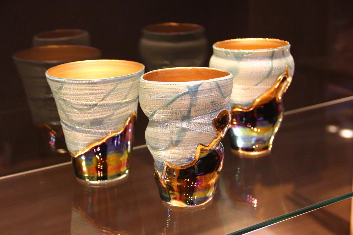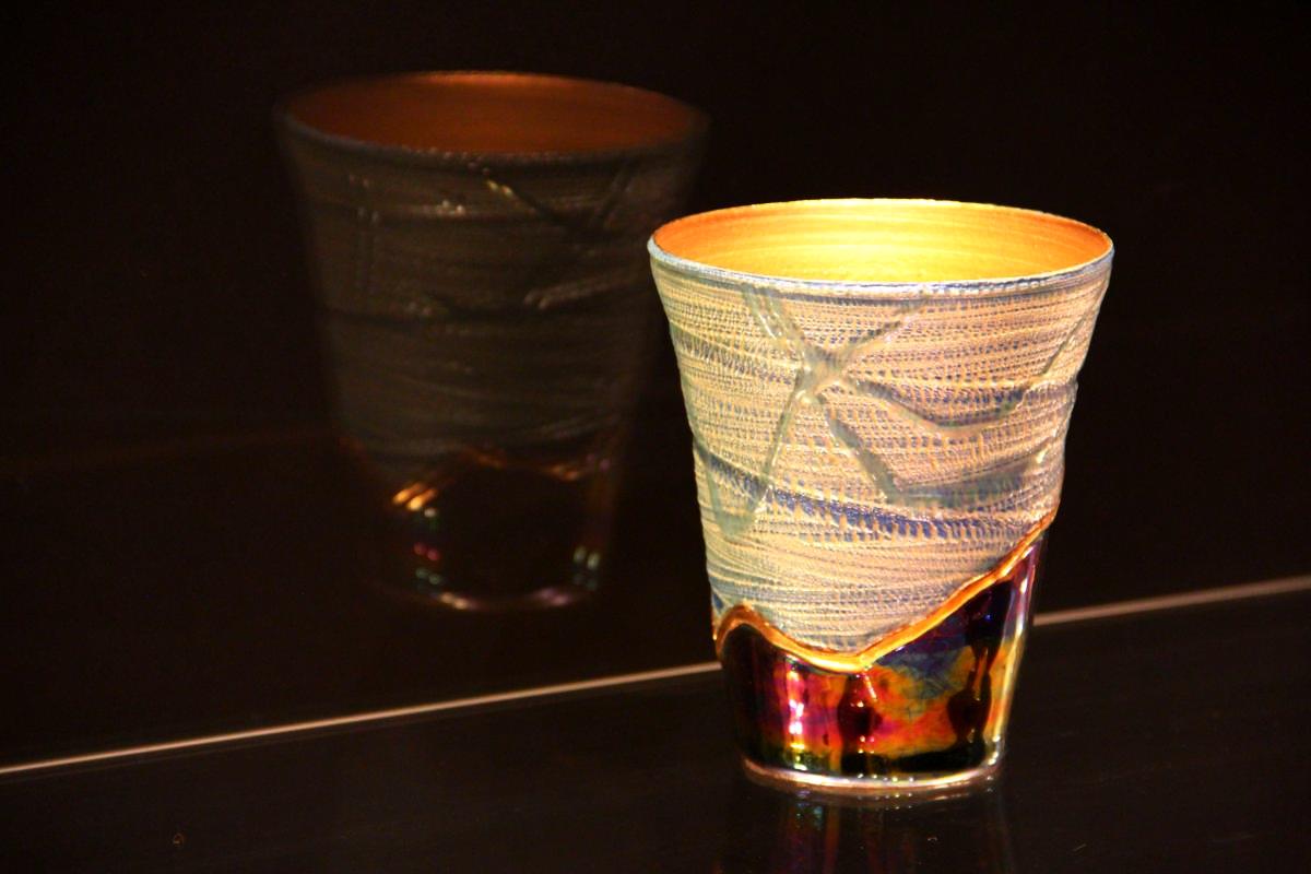 | 表参道焼:金継ぎ(呼び継ぎ)をモチーフに制作した陶器です。器胎から呼び継ぎまで全て陶器でTNCAが制作しています。 | 表参道焼:金継ぎ(呼び継ぎ)でワイングラスやショットグラスを制作しています。器胎は江戸時代や明治時代の骨董品でネックやステム、フットを呼び継ぎで制作、全てTNCAが制作しています。 | |||||||||