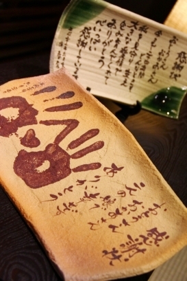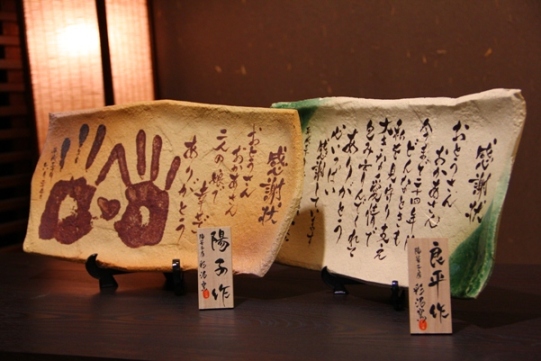紙と違い、半永久的な陶器に書いて焼き付けた感謝状の陶板は高級感もひときわ。 |