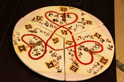 この時計は会場全体で“時計合わせの儀式”をし、皆が赤い糸の絆で結ばれていたとい気持ちになってもらえるギフト。 |