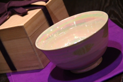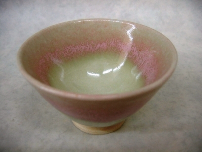 口縁に茶色と桜色の中間色を配し器を引き締めています。