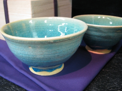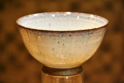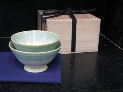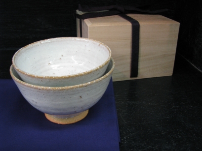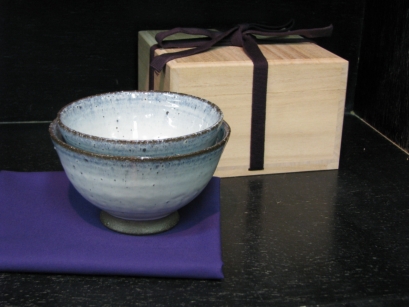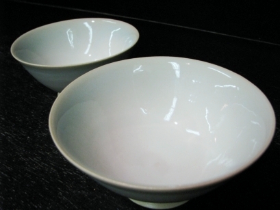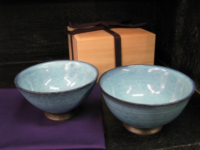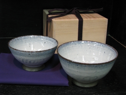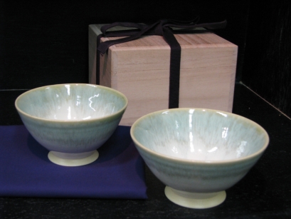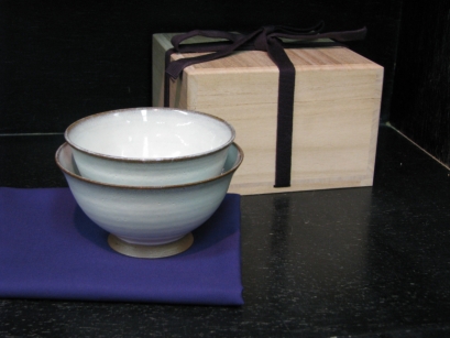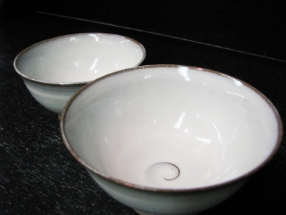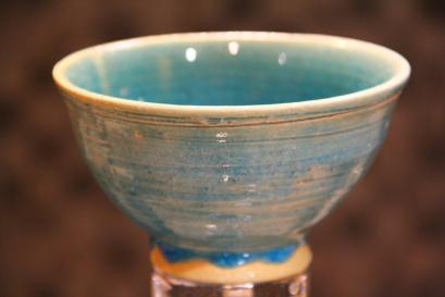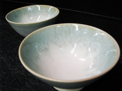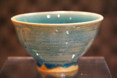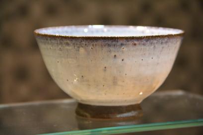 鍾乳石(白)に溜まった青い湖を彷彿させる格段に美しい乳青白の飯椀です。写真ではその美しさは写りづらく、現品を工房で手にとって頂きたいと思います。