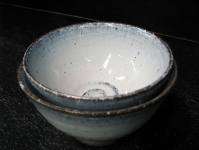 生地土と釉薬の調和がとても美しい茶碗です。黒い土を生地にしますので、汚れも目立ちにくく、青白の釉薬は白米以外の料理でも盛り付けを選びません。高級感に溢れながらも大変使い勝手の良い飯椀です。是非、工房で手にとってみて下さい。