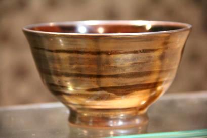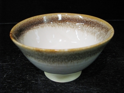 落葉の景色を彷彿させる飯椀です。金茶色に発色する釉調は豪華絢爛なお殿様へ献上するうつわのようです。高級な釉薬を使用しています。白米をいれても引き立ちます。