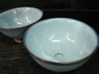 青白の釉薬と生地土の調和美しい飯椀です。明るい色彩は清涼感を感じさせます。盛るものは多少選ぶかもしれませんが、青が好きな方にお勧めの飯椀です。 |