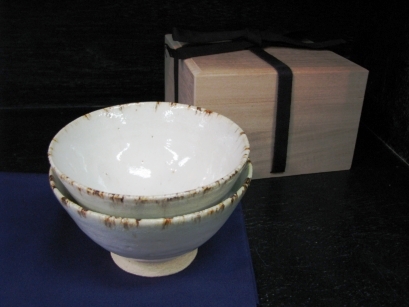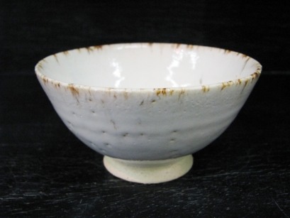 大地に降り積もった白雪を思い起こさせる飯椀です。口縁にみえる生地土と釉薬の白さの対比が格の高さ緊張感を伝えてきます。シンプルな美しさの際立つ飯椀です。是非工房で現物の美しさを手にとってみて下さい。