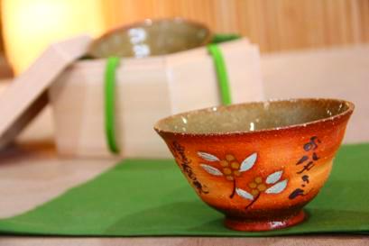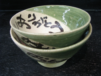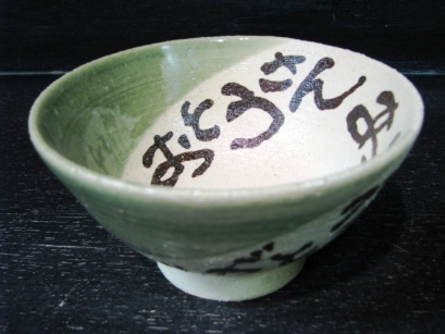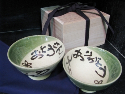 ご自分で自由にデザインができる飯椀です。絵や文字を入れることにより、記念品により付加価値を付けることができます。素焼後、再度工房に来て頂き釉薬を掛けた後に絵付けや文字入れの工程を進めて頂きます。土鍋などに使用する、熱に強い耐火粘土を使用していますので、電子レンジにも遠慮無くかけることができます。手触りも土味がいいです。 |