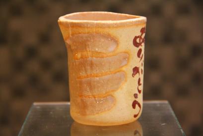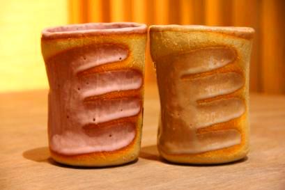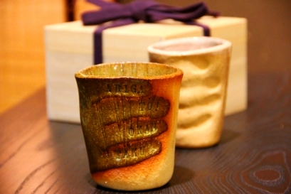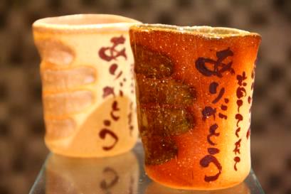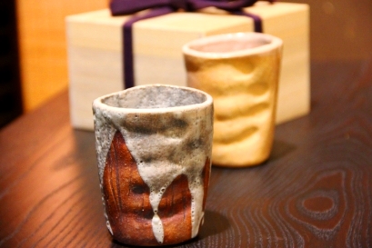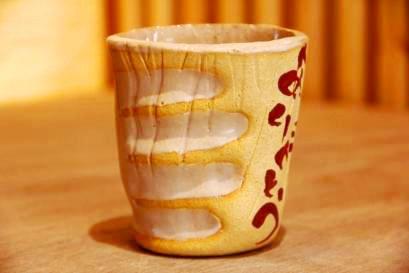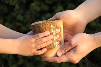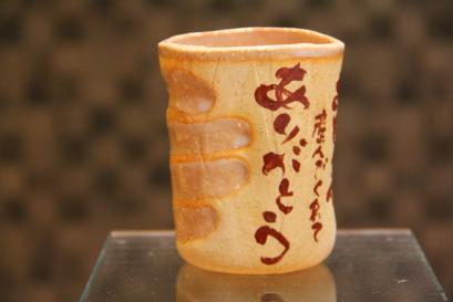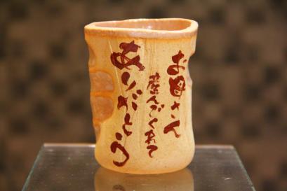ご両親はお二人の成婚を祝う傍ら、「いよいよ本当に子離れの時が来た」と感じていらっしゃいます。そして、お式では誕生や幼少期まで、遡って思いを馳せるものです。この湯呑は自身の本物の手形を湯呑(カップ)に写し取り、その形のまま釉薬を掛けて焼き上げています。贈られたご両親は、お茶や晩酌の度に娘や息子と手が繋がります。離れて暮らしていても、いつでも幼少の頃に手を繋いだ事を思い出してもらえる、親子の絆を育む(はぐくむ)陶器です。 |