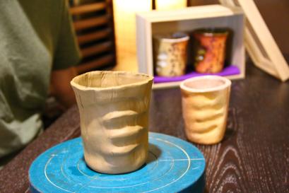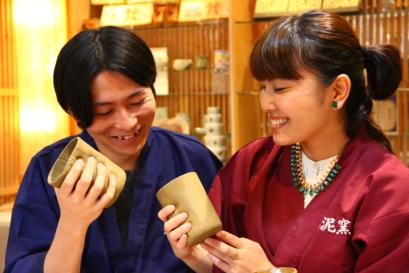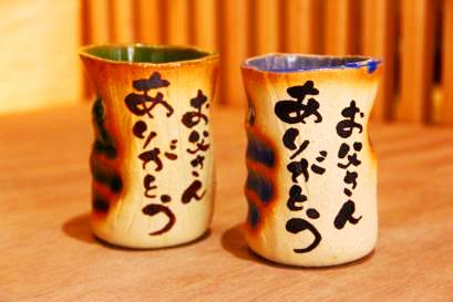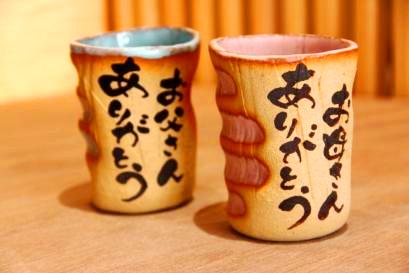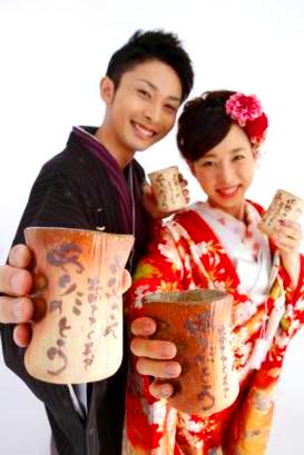 初めての方でも楽しくしっかりと制作できるように、熟練の陶芸士がサポートしながら制作して頂きます。お二人らしい味わいのある湯呑(カップ)が完成します。うつわの表面には、直筆で感謝のメッセージや絵を入れられます。制作物は彩泥窯で焼き上げて桐箱にお入れしてお渡しします。。