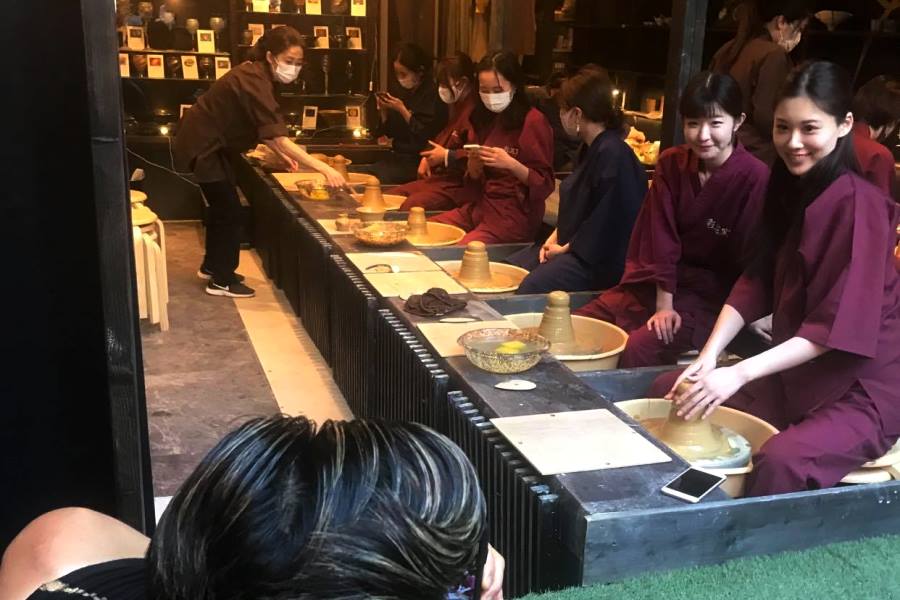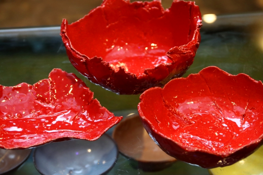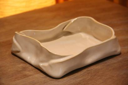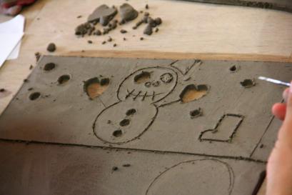 約30センチ四方の正方形の板状の粘土から好きな器の形を組み立てていきます。