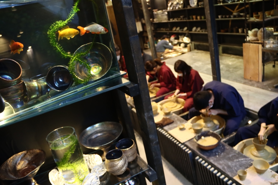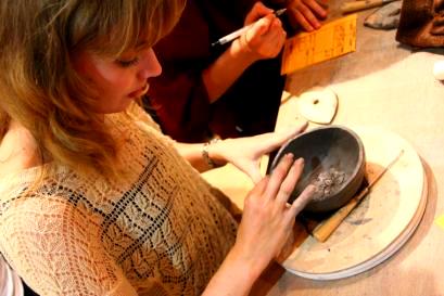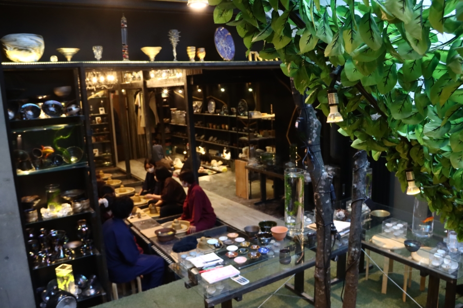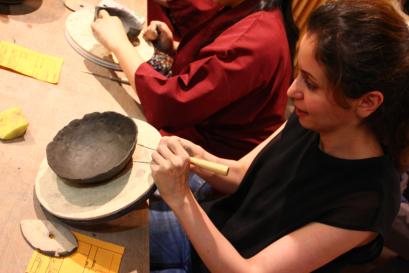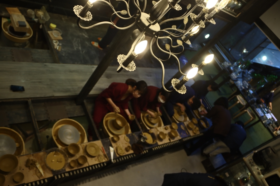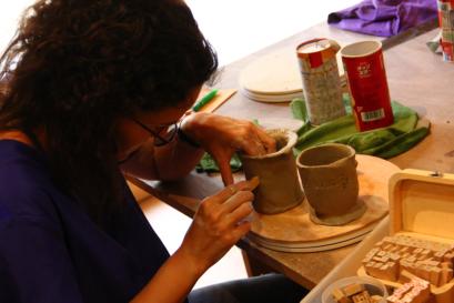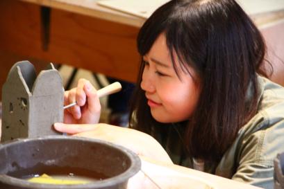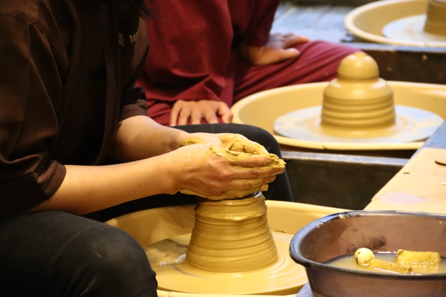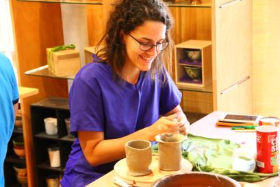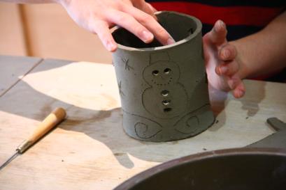 一枚の板粘土を筒状に丸めてカップにするコースです。