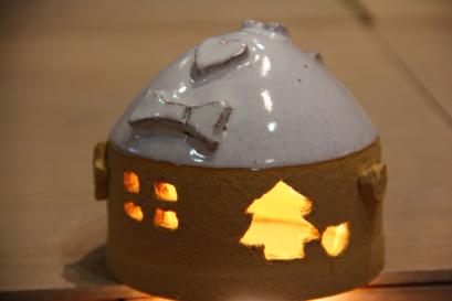 生地を丸めて自由にデザインするランプシェードです。箱型、丸型、だるま型、家もOK。中に光をともすと雰囲気が一変。暖かく幸せな雰囲気がお部屋に広がります。天井に吊るすシェードもできます。 |